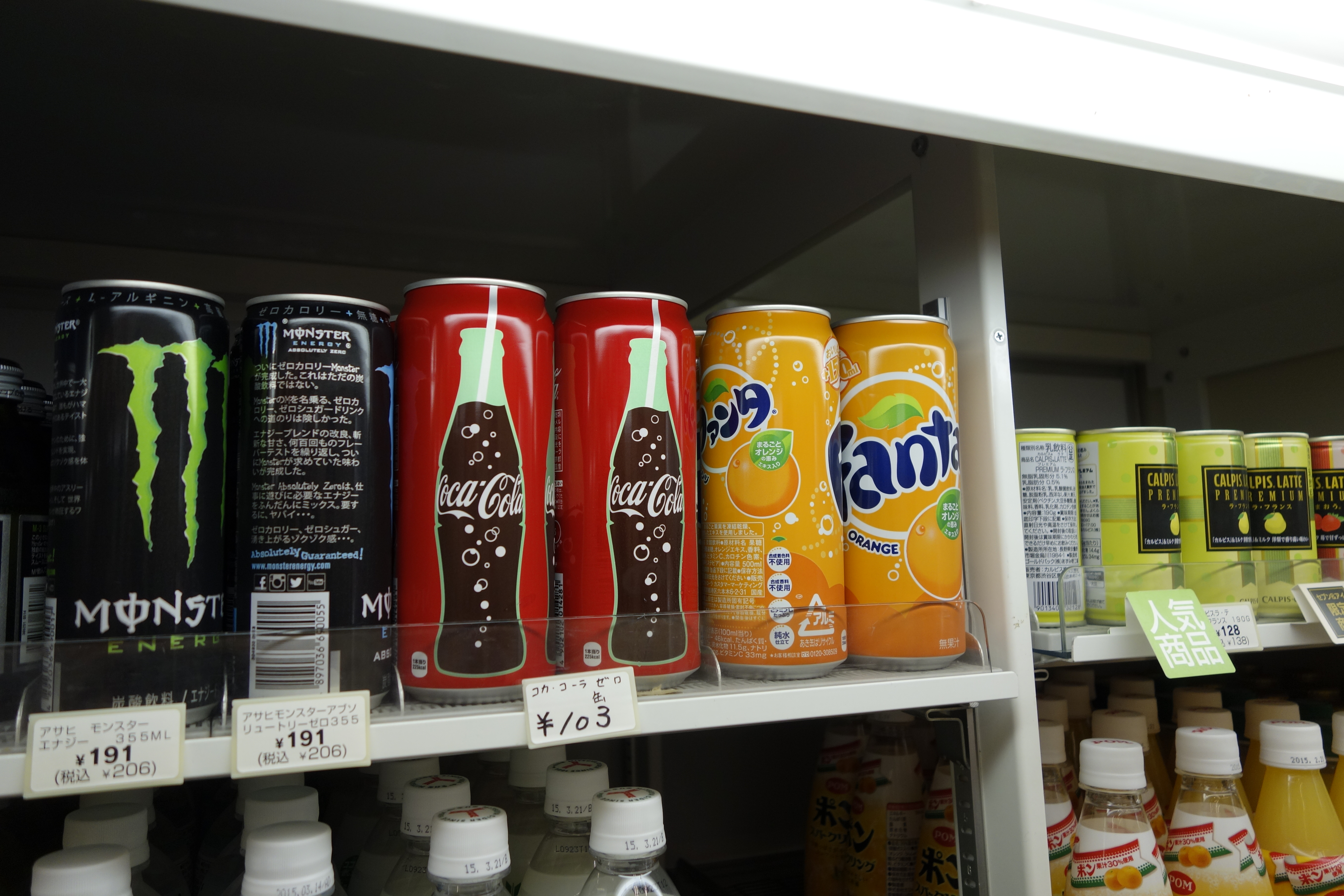 överallt, det finns till och med “varma” kylskåp så att man kan köpa varmt te på burk. Det finns en drös av olika balla teer. Apelsin och honung här ovan var riktigt nice! Innan det drack jag ett gediget japanskt grönt te på flaska, det var också fint.