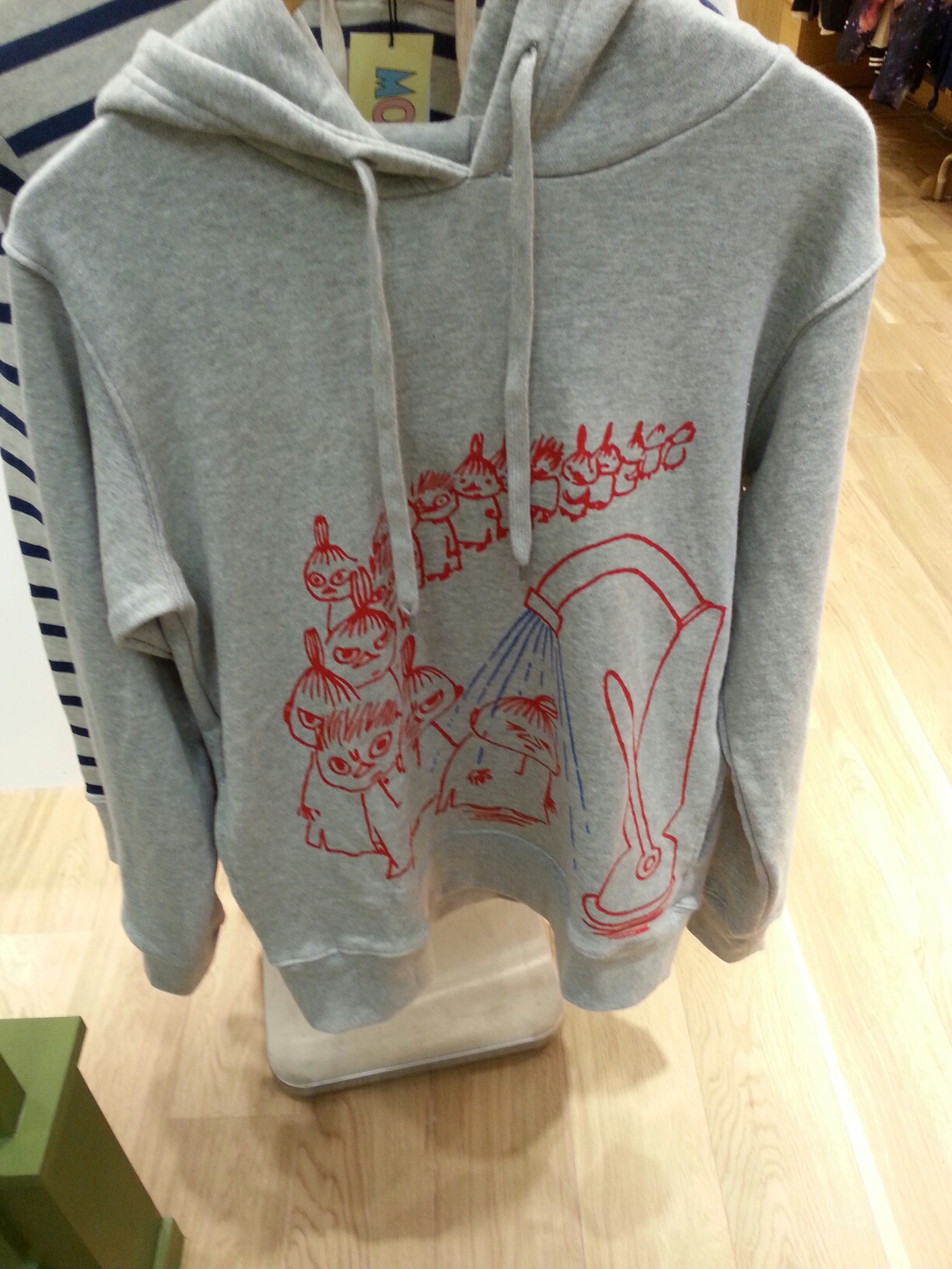 Dom gillar moomin! Man slår på tvn å där är en muminfilm dubbad till Japanska. Fantastiskt! Sen går man i en butik och ser muminkläder. Fantastiskt! Sen går man i ett shoppingcenter och där har dom ett mumincafé! Där kan man sitta med sina bästa vänner Mumin, Lilla My och de andra :D. Fantastiskt!