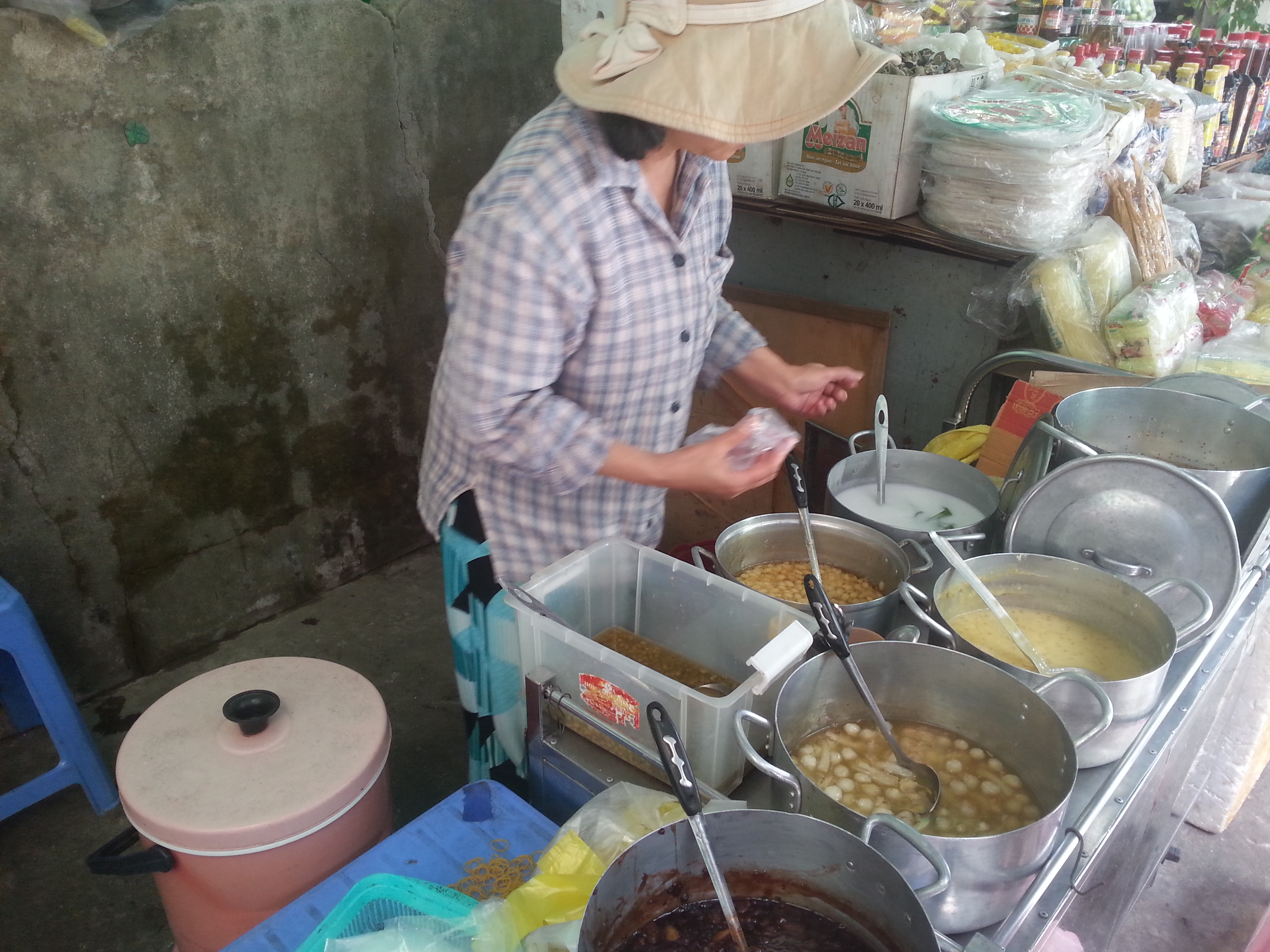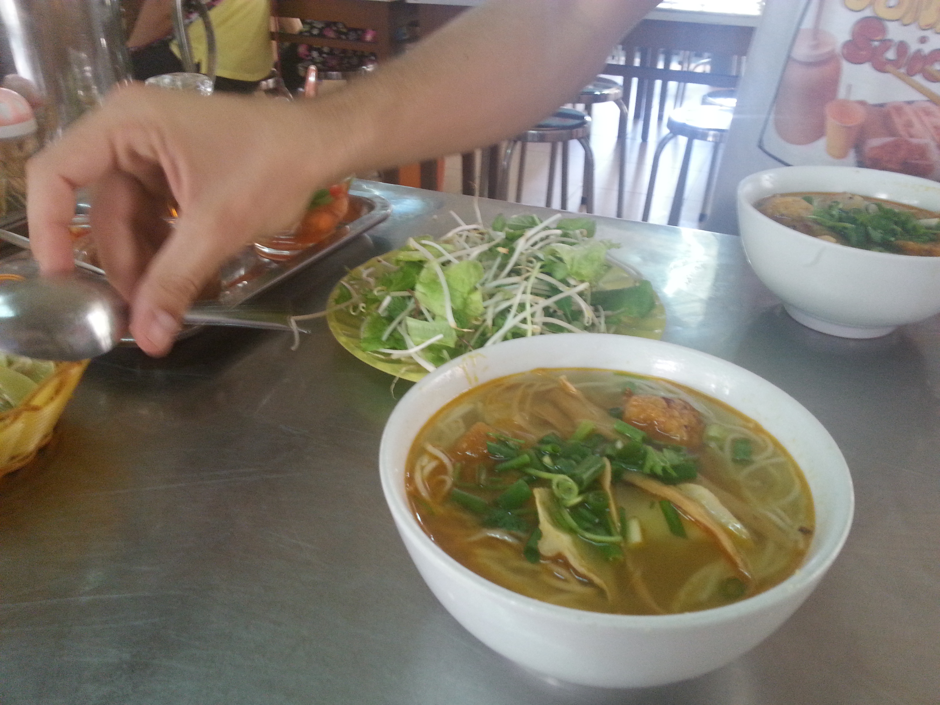 Därefter blev det nudlar med olika fiskkakor, typ som små bollar av fisk. Tre olika sorters fisk var det, det smakade knappt fisk! Det var samma sak i Ho Chi Minh när jag käkade BBQ, fisken smakade inte sån där sunkig fisk så till och med en av de ja hängde med som verkligen ogillar fisk, tyckte det var gott. Det är nåt med fisken här helt enkelt!
