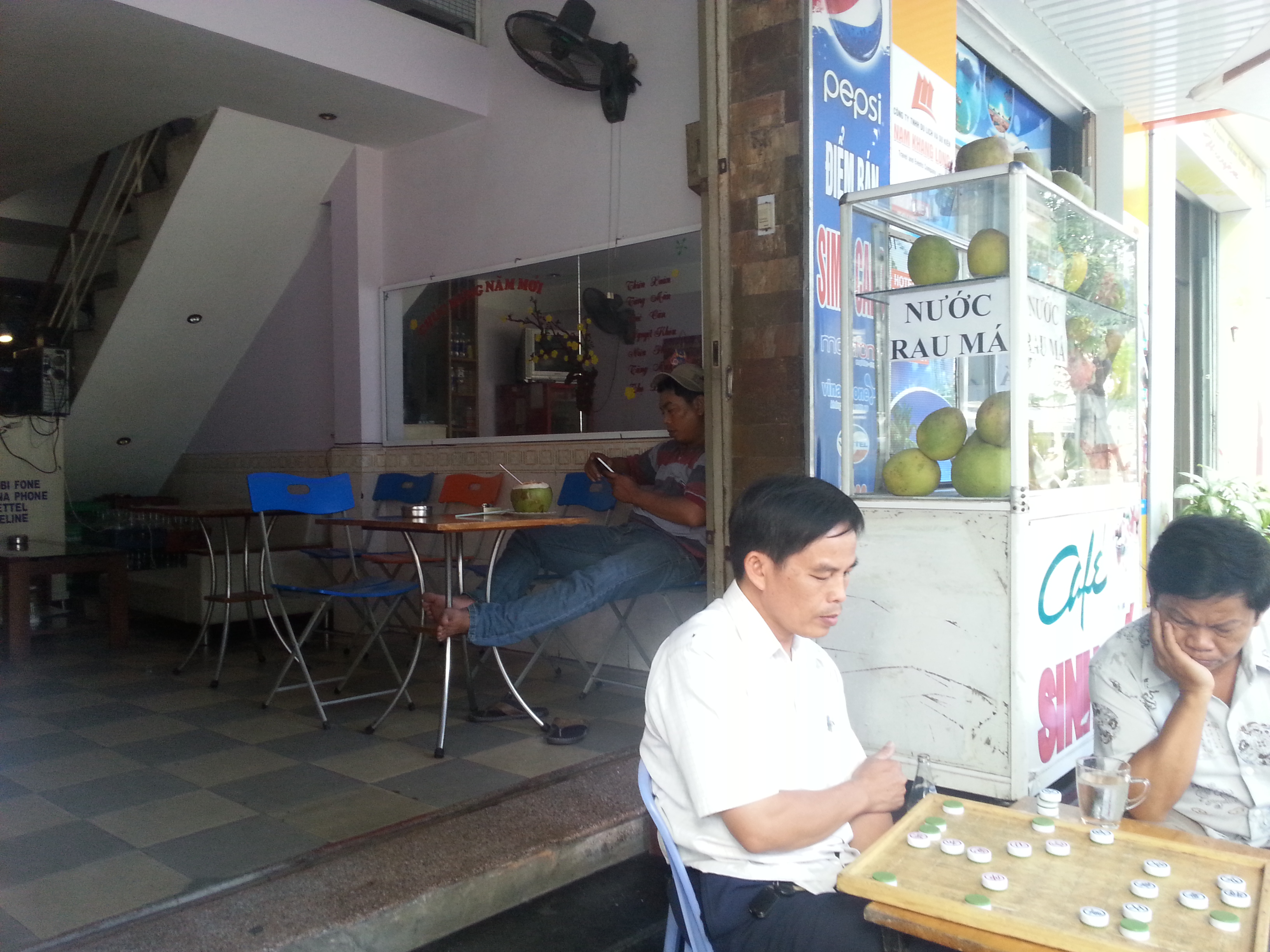Ett chill fik med kaffe och te. Man får en stor isbit i muggen och vissa skulle avråda att dricka det. Men här är det ganska lugnt med hygienen och hittills har jag mått bra :D. Själva kaffet var svart med en del socker. Det var faktiskt riktigt gott. Tydligen är kaffeplantagen inte långt härifrån. Så det är ganska färska grejer man får.