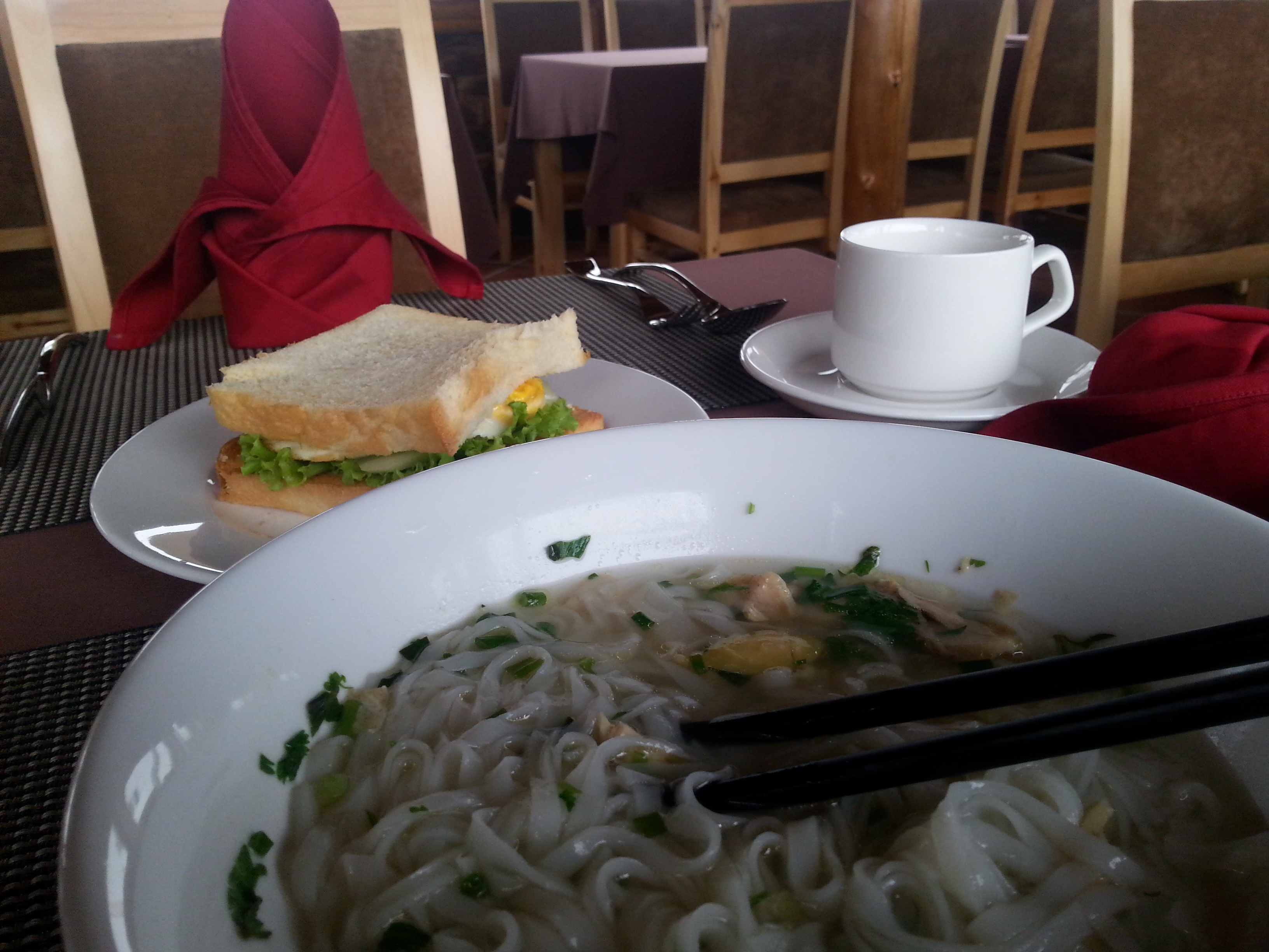 Pho med äggmacka blev det till frukost på en takrestaurang som hotellet hade 😉 Ensam i restaurangen var jag, drt kändes lite knas men jag hade i alla fall tid att bekanta mig med ägaren som var en hyvens kille. De skutsade mig med scooter efter detta till busstationen och hjälpte mig med biljetter till Cat Ba. De försäkrade sig verlligen om att jag skulle hinna och komma rätt.