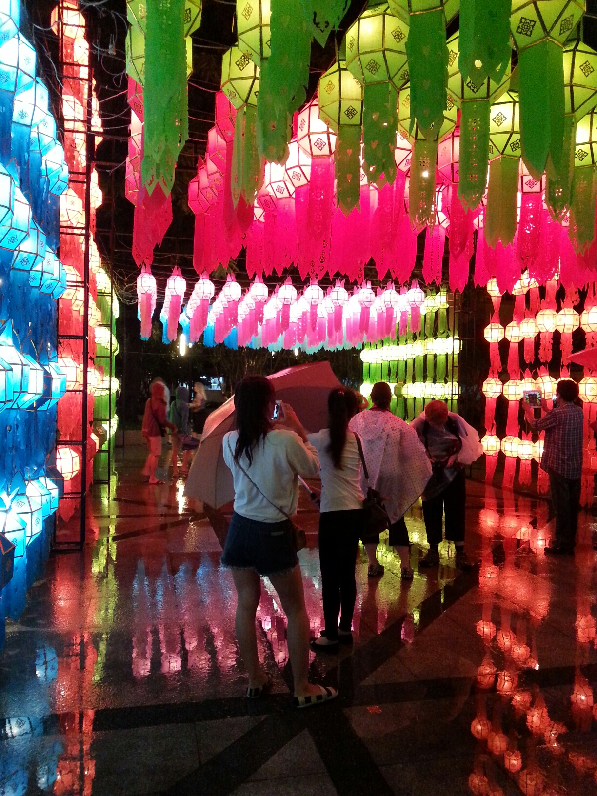 Jag har tydligen lyckats träffa in en festival här. Det betydde långa väntetider på taxi i ett förvirrande system men också att jag nu får ta del av detta. De spelar musik och dansar, de tänder massa lanternor och skjuter fyrverkerier. Så jag gick och kollade. Mycket mysigt i det småregniga vädret.