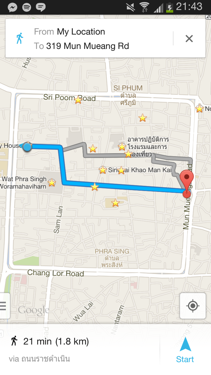 That is the way from my hotel and all the way to the end of the street market. It starts from Wat Phra Singh until the moat!  The old town by the way is inside the “square” which is an old moat.