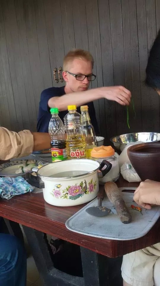 We stoped by the local market amd got the ingredients for Panang Thai Kai (I think), cabbage soup and some kind of coconut banana thing for desert. It didn’t take that much time to cook it all and even though I didn’t do thaat much, I think I can make it all at home 😀 And it was delicious!